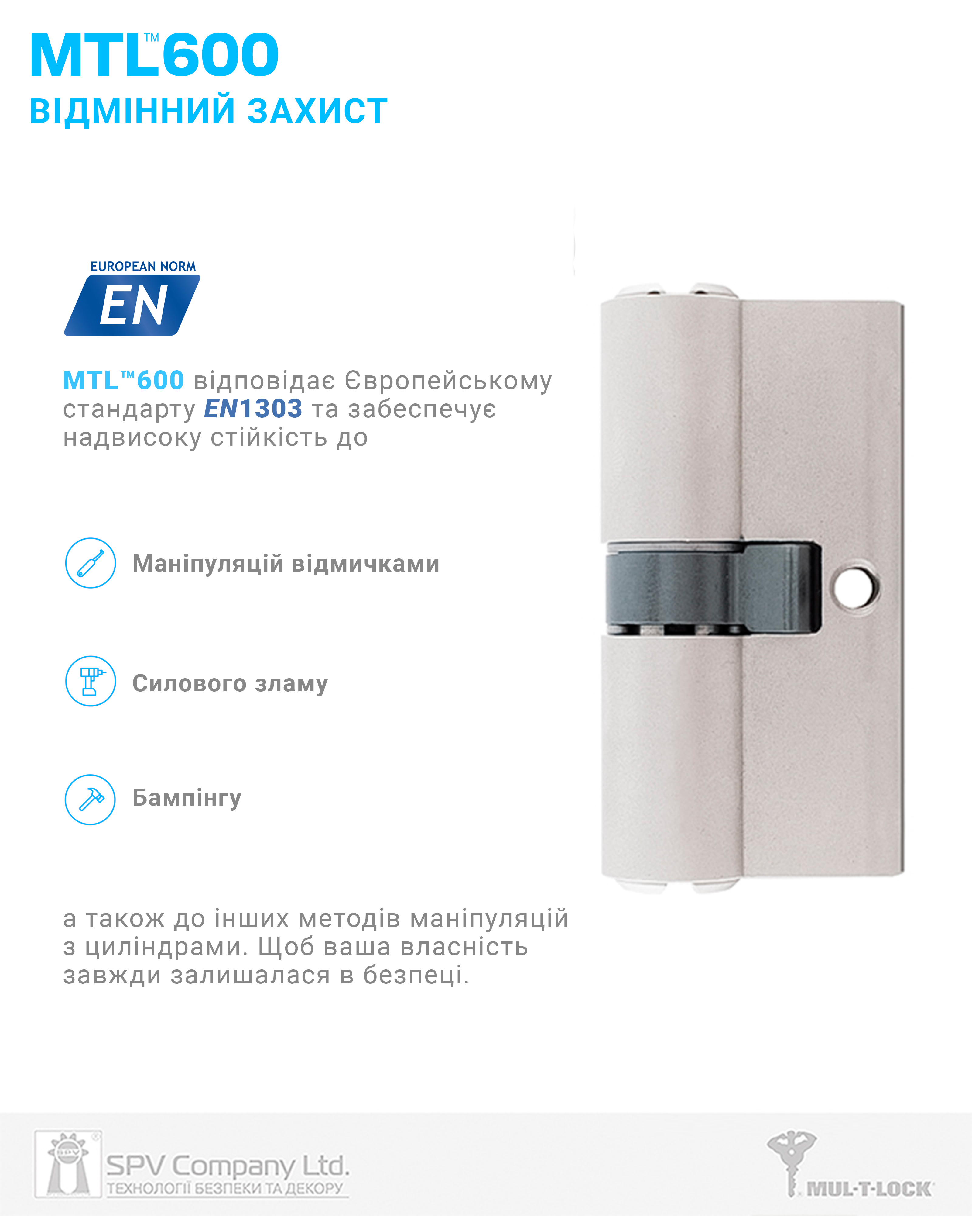 Циліндр MUL-T-LOCK® MTL600 класу High Security стандарту EuroDIN призначений для забезпечення пасивної безпеки та контрольованого доступу до об'єктів охорони.