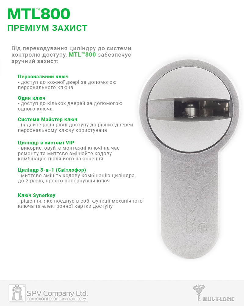 Циліндр MUL-T-LOCK® MTL800 класу Extra Security стандарту EuroDIN призначений для забезпечення пасивної безпеки та контрольованого доступу до об'єктів охорони.