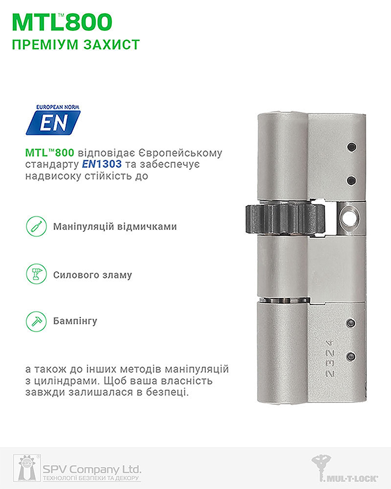 Циліндр MUL-T-LOCK® MTL800 класу Extra Security стандарту EuroDIN призначений для забезпечення пасивної безпеки та контрольованого доступу до об'єктів охорони.