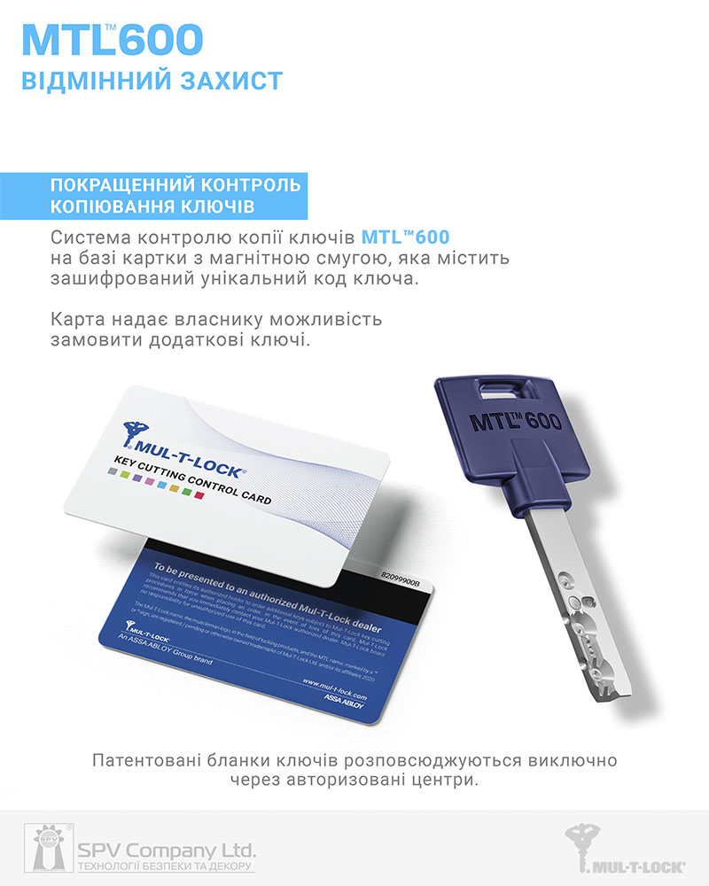 Циліндр MUL-T-LOCK® MTL600 класу High Security стандарту EuroDIN призначений для забезпечення пасивної безпеки та контрольованого доступу до об'єктів охорони.