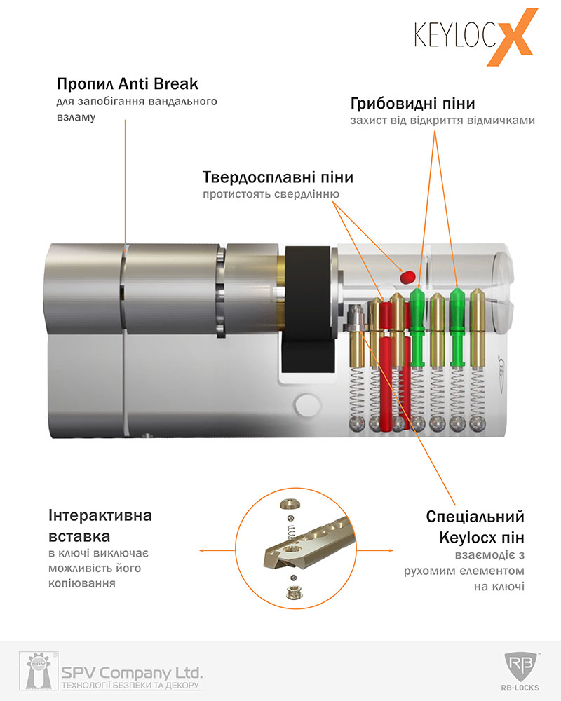 ТЕХНІЧНІ ХАРАКТЕРИСТИКИ циліндра RB LOCKS KEYLOCX: