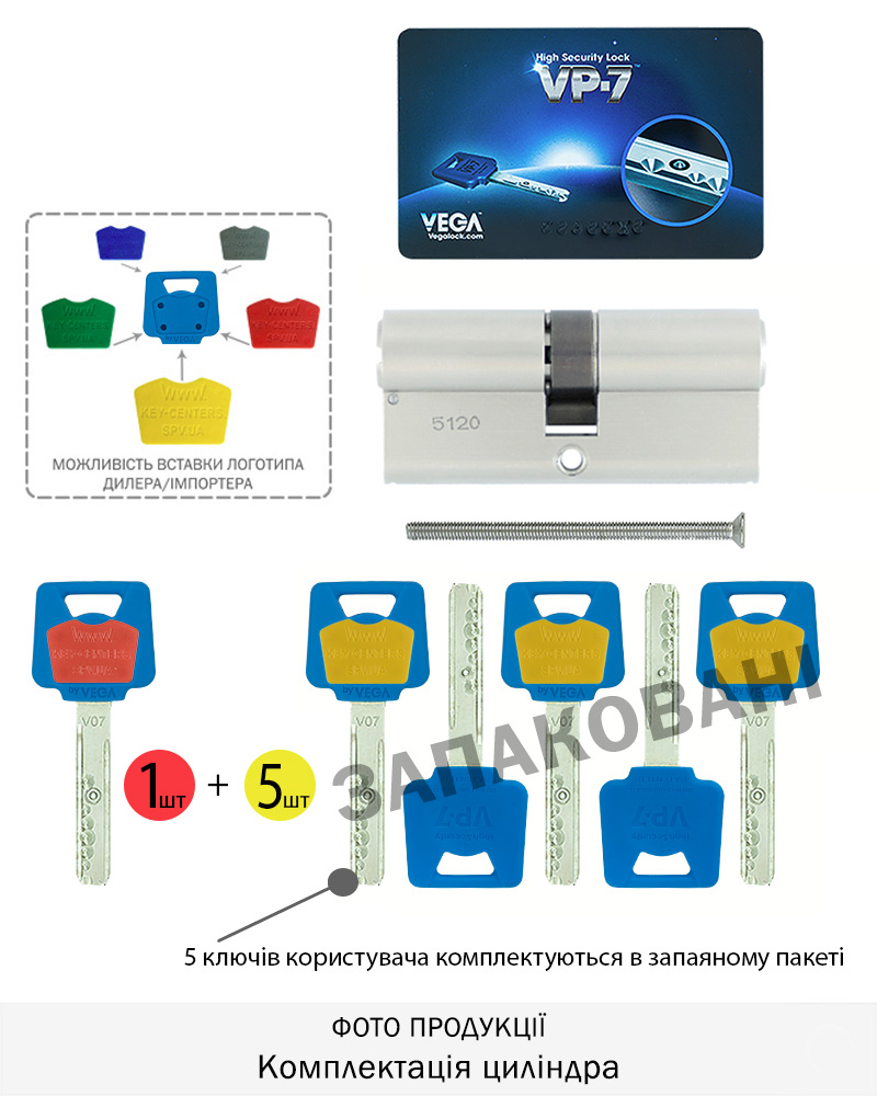 6 ключів (1 монтажний + 5 ключів власника) з підготовкою під INSERT (кольорові вставки в ключ з логотипом Локсмайстер партнера),,