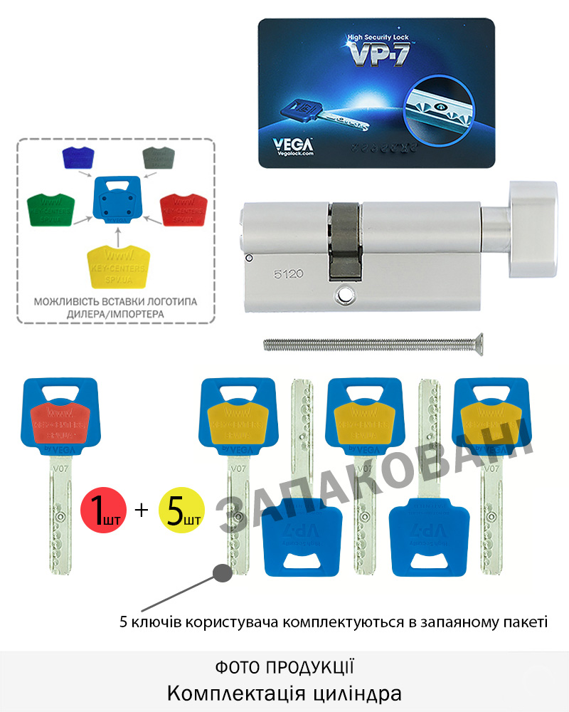 6 ключів (1 монтажний + 5 ключів власника) з підготовкою під INSERT (кольорові вставки в ключ з логотипом Локсмайстер партнера),,