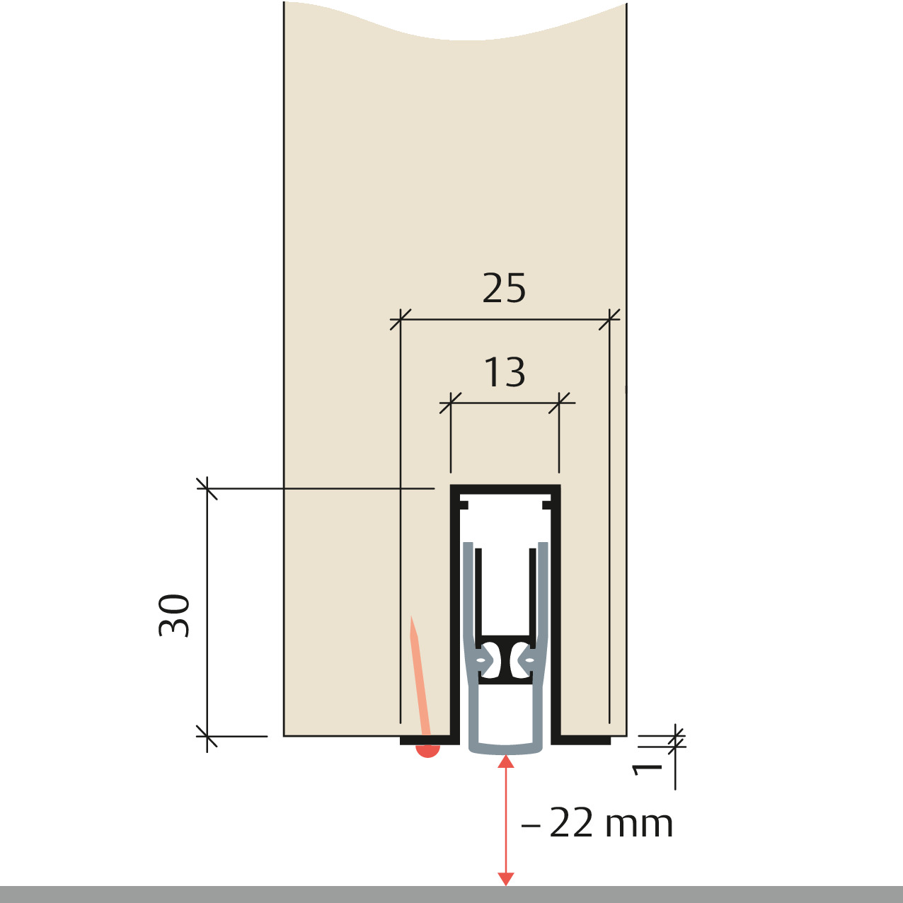 Поріг висувний для дерев'яних дверей, розташованих в приміщеннях з рівною поверхнею підлоги. Тихе, рівномірне паралельне опускання з автоматичною компенсацією ухилу підлоги. Можливе використання на металевих та профільних дверях.