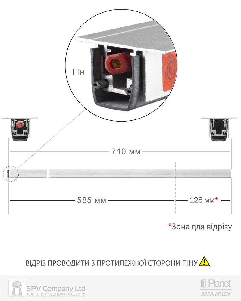 Довжина - 710 мм. Зменшення довжини в межах 125мм. Для дверних полотен шириною від 585 мм. до 710 мм.
