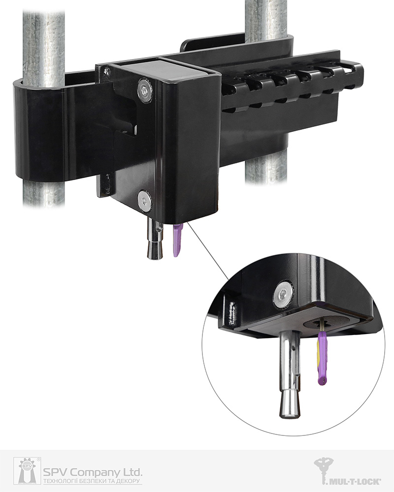 Запобігає несанкціонованому доступу до внутрішнього простору контейнера шляхом утримання замикальних стержнів