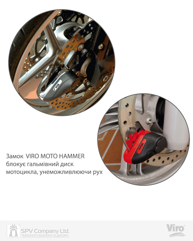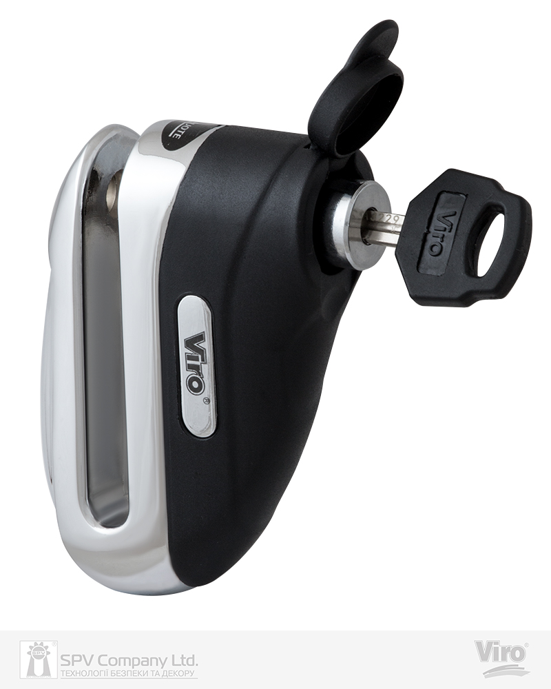 Протиугінний замок, що блокує гальмівний диск мотоцикла