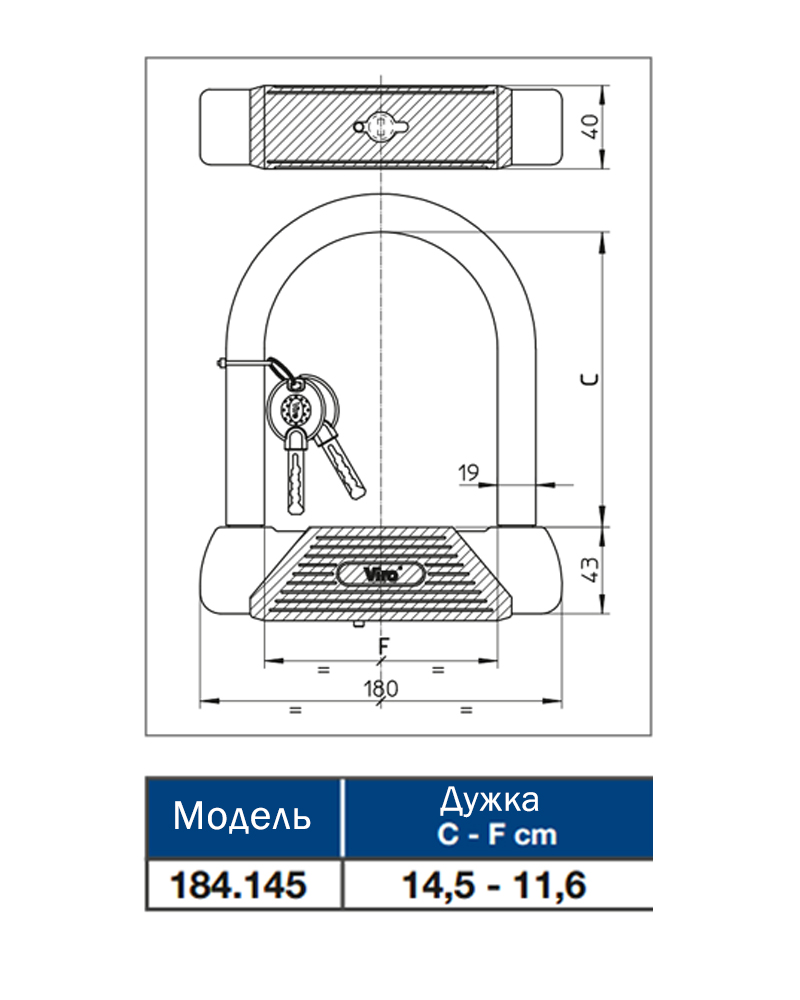 Дужка: загартована сталь, пофарбована в чорний колір, діаметр дужки 19 мм.