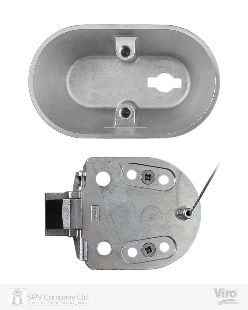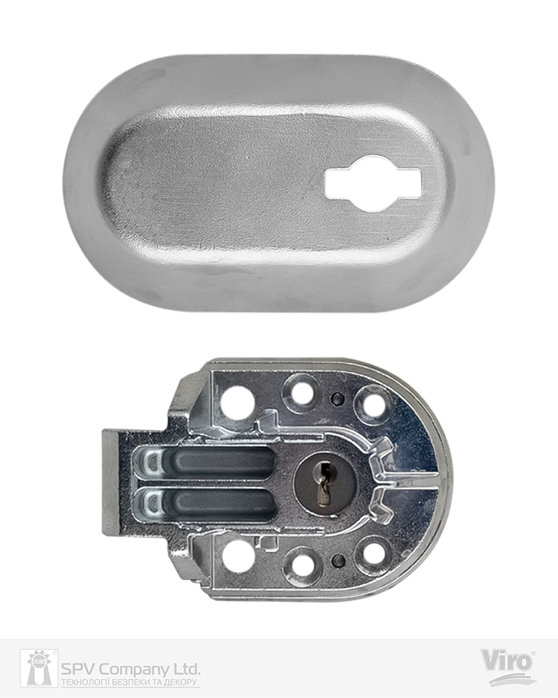 Циліндр з латуні з 5 пінами зі шторкою для захисту проти води та пилу. Ключі: поставляється з 2 ключами Viro 032 профілю