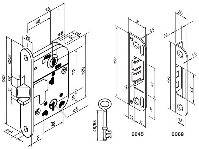 BackSet 45 мм. Вихід ригеля – 11 мм.