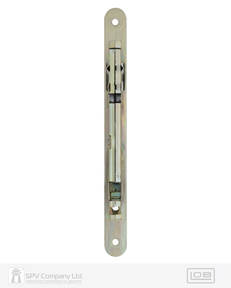 Застосовується з фурнітурою DIN стандарту. Mіжцентрова відстань 72 мм. BackSet 50 мм. Вихід ригеля 10 мм. Нереверсивна заскочка. Сторонність – лівий. Торцева планка: обробка – порошкова фарба під латунь. Зворотна планка замовляється окремо.