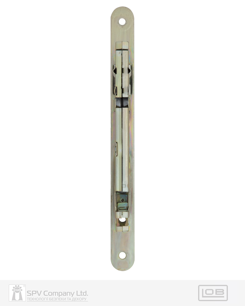 Застосовується з фурнітурою DIN стандарту. Mіжцентрова відстань 72 мм. BackSet 50 мм. Вихід ригеля 10 мм. Нереверсивна заскочка. Сторонність – правий. Торцева планка: обробка – порошкова фарба під латунь. Зворотна планка замовляється окремо.