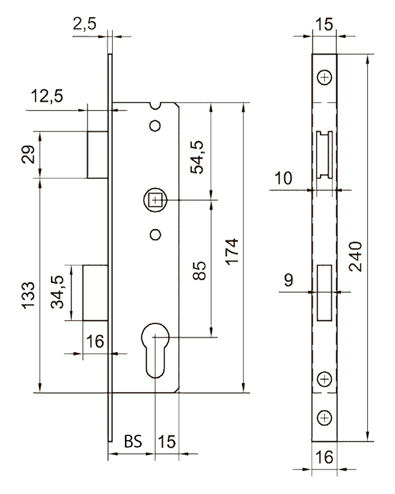 Вихід ригеля – 16 мм.