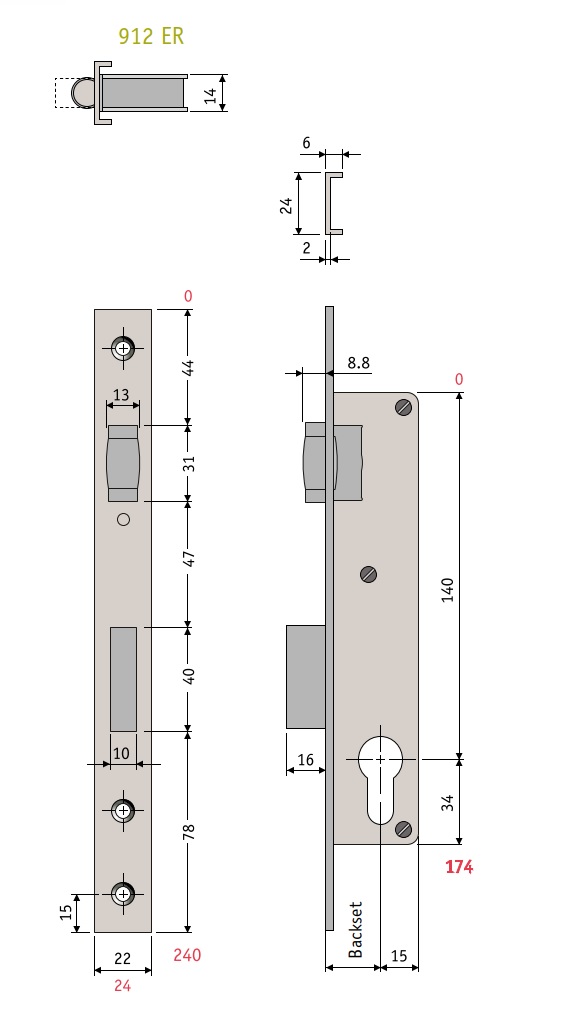 Основний замок SANTOS Profile Lock 720 для профільних дверей під циліндр DIN.