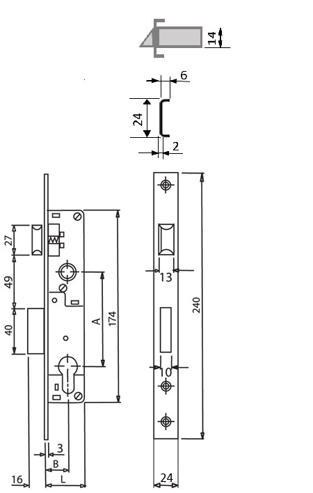 Основний замок SANTOS Profile Lock 726 для профільних дверей під циліндр DIN.