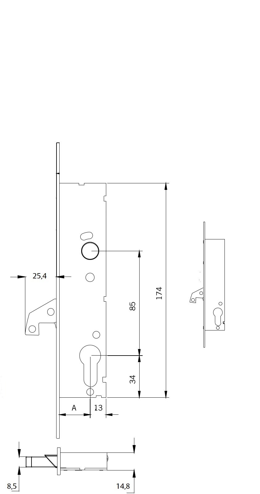- Корпус замку товщиною 15 мм, підходить для конструкцій з термоізоляцією