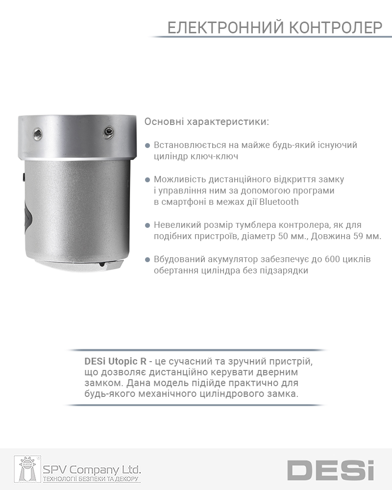 Електронний контролер DESI Utopic R OK Type A надає користувачу максимальну зручність в повсякденному користуванні, гнучкість адміністрування, надійний контроль та безпеку.