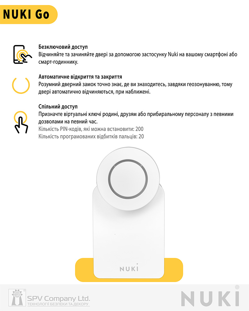 Nuki Smart Lock Go — це доступний розумний замок, який забезпечує безпечний та зручний доступ до вашого дому. Він поєднує в собі перевірені функції попередніх моделей з новими можливостями, зберігаючи при цьому привабливу ціну.