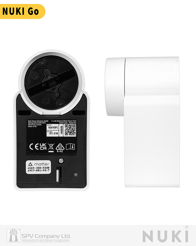 Живлення: Працює від стандартних лужних батарейок типу AA, які можна замінити на акумуляторний блок Nuki Power Pack для більш тривалого використання.