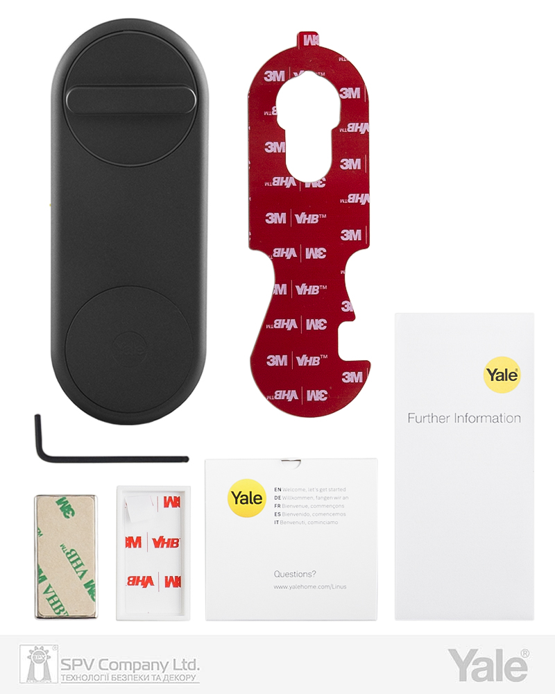 Опції відмикання: з мобільного додатку YALE HOME, за персональним кодом з електронного зчитувача YALE LINUS Keypad, механічним ключем.