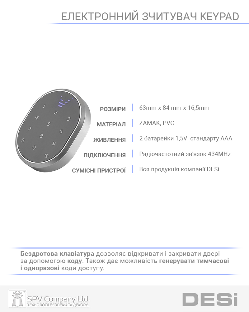 Призначений для керування електронними контролерами DESI Utopic. Не потребує прокладання дротів (бездротовий зв’язок з контролером DESI Utopic).