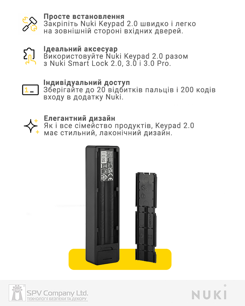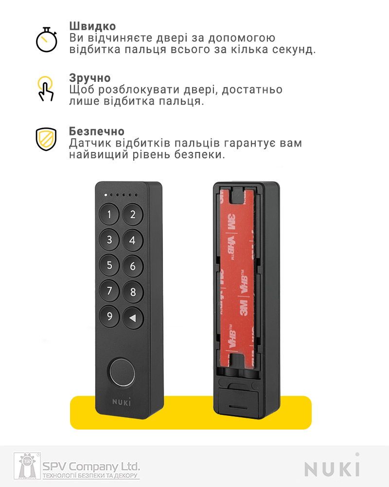 NUKI Keypad 2.0 Fingerprint – оновлена вдосконалена кодова панель з інтегрованим сканером відбитка пальцю, що керує доступом до дверей, які обладнані контролером NUKI Smart Lock.