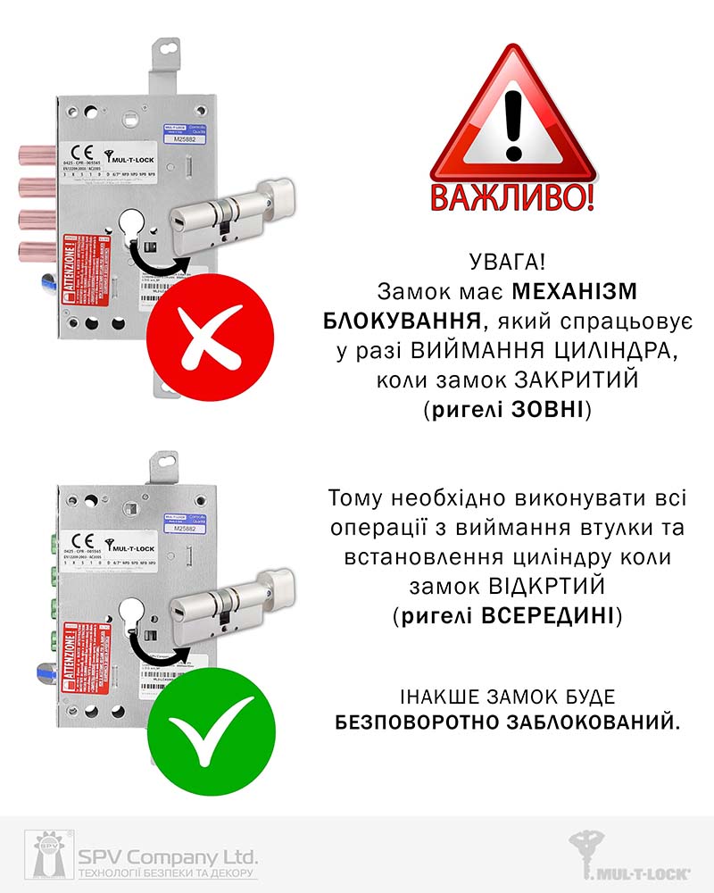 В разі спрацювання механізму блокування відновити функціонування замка НЕМОЖЛИВО!