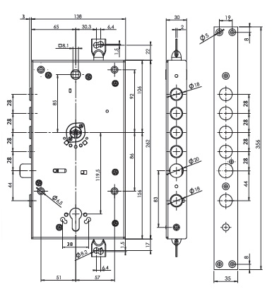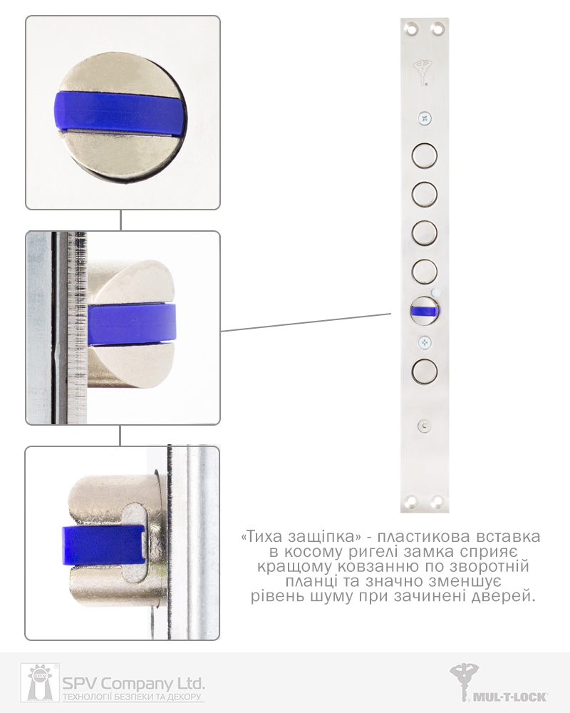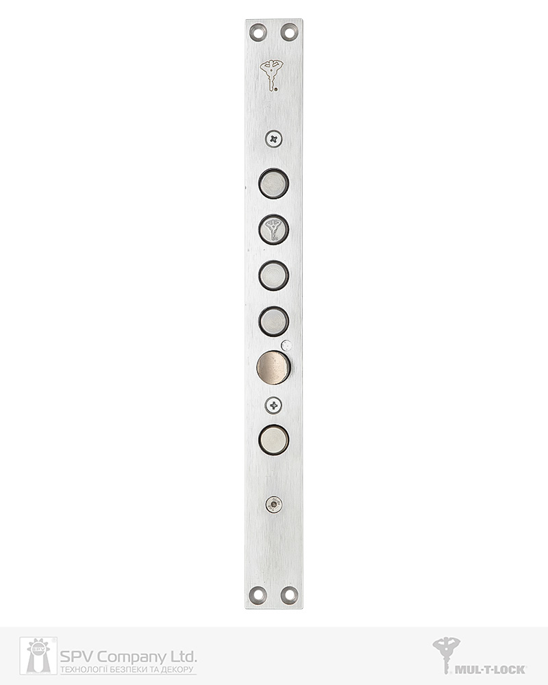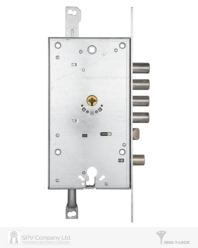 Циліндровий механізм стандарту EuroDIN керує додатковим ригелем та блокує «основний» замок. Патентований шестеренчастий механізм приводу ригелів.