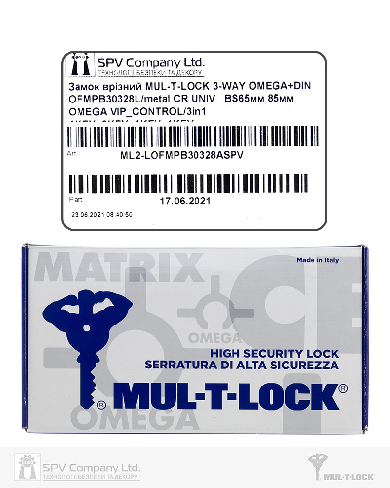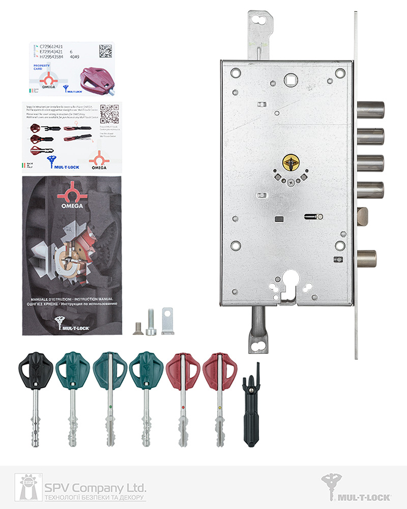 Основний замок 3-направленого замикання MUL-T-LOCK Omega OFMPB3 з двома системами замикання. MOTTURA типу