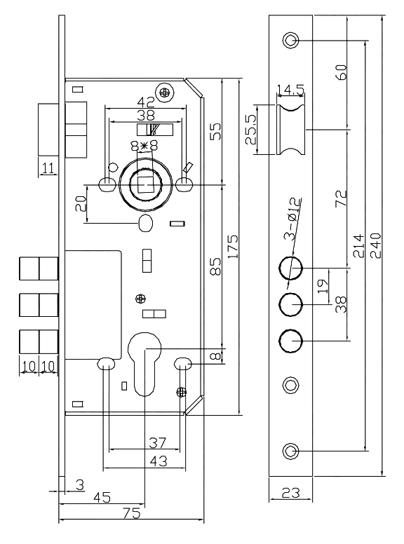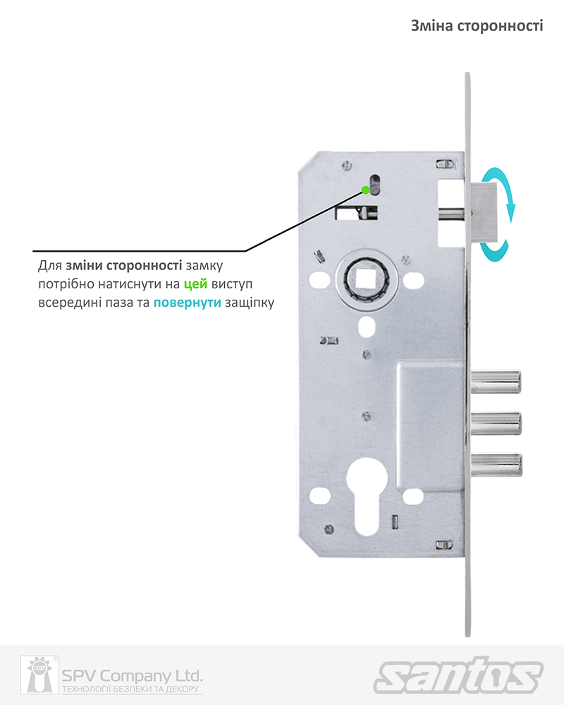 Основний замок SANTOS Sash Lock 2800R-3M економ-серії під циліндр DIN.