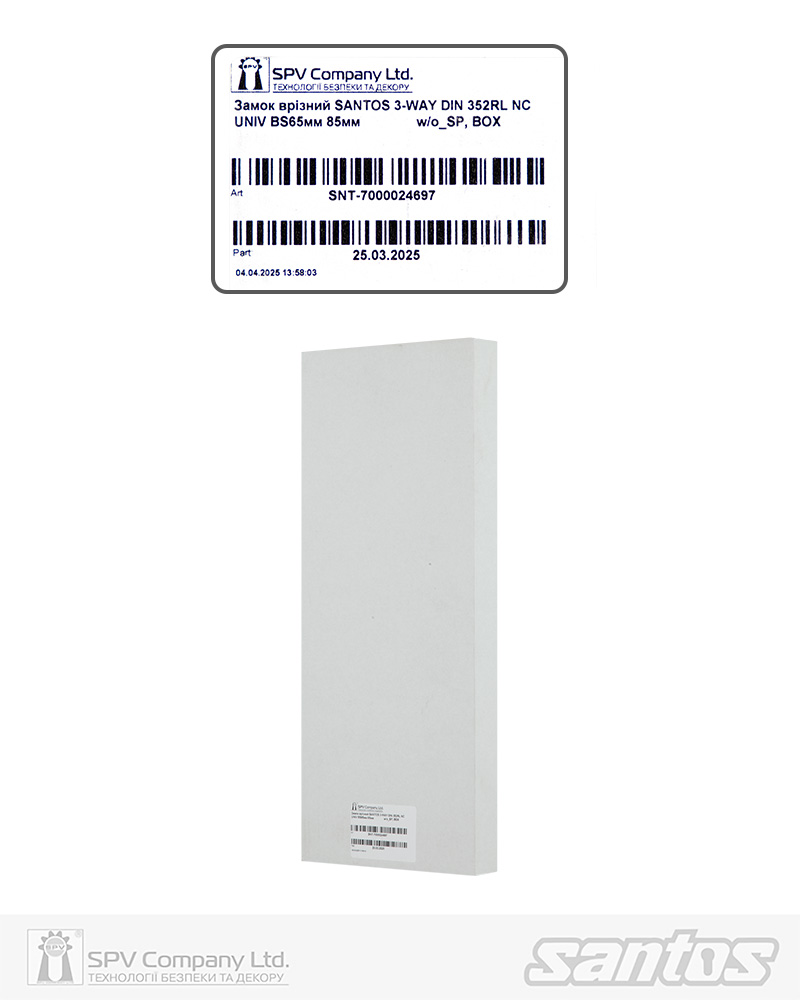 Основний врізний замок високого рівня безпеки 3-направленого замикання SANTOS 3-WAY DIN NC 352RL UNIV BS65мм 85мм .