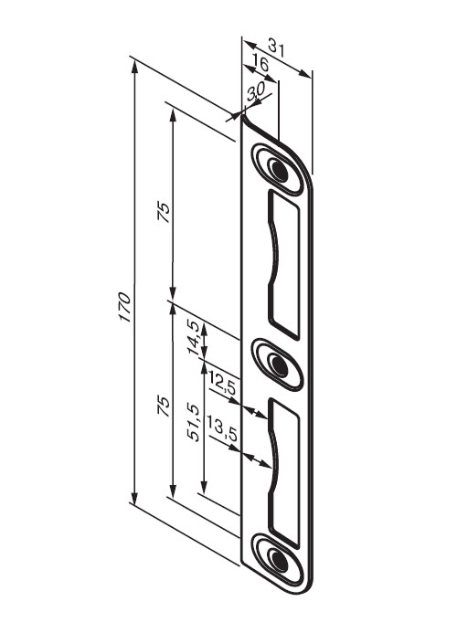 Зворотня планка для прямих дверей ( без фальцу) до основного протипожежного замку 4262, 4292. Обробка хром.