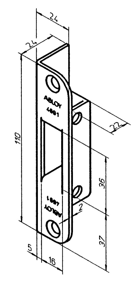 Зворотня планка для дверей з фальцем (чверті, напливом). Використовується з замками серій ABLOY 4190, 4290, LC100 Обробка CR (хром).
