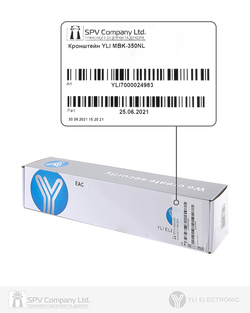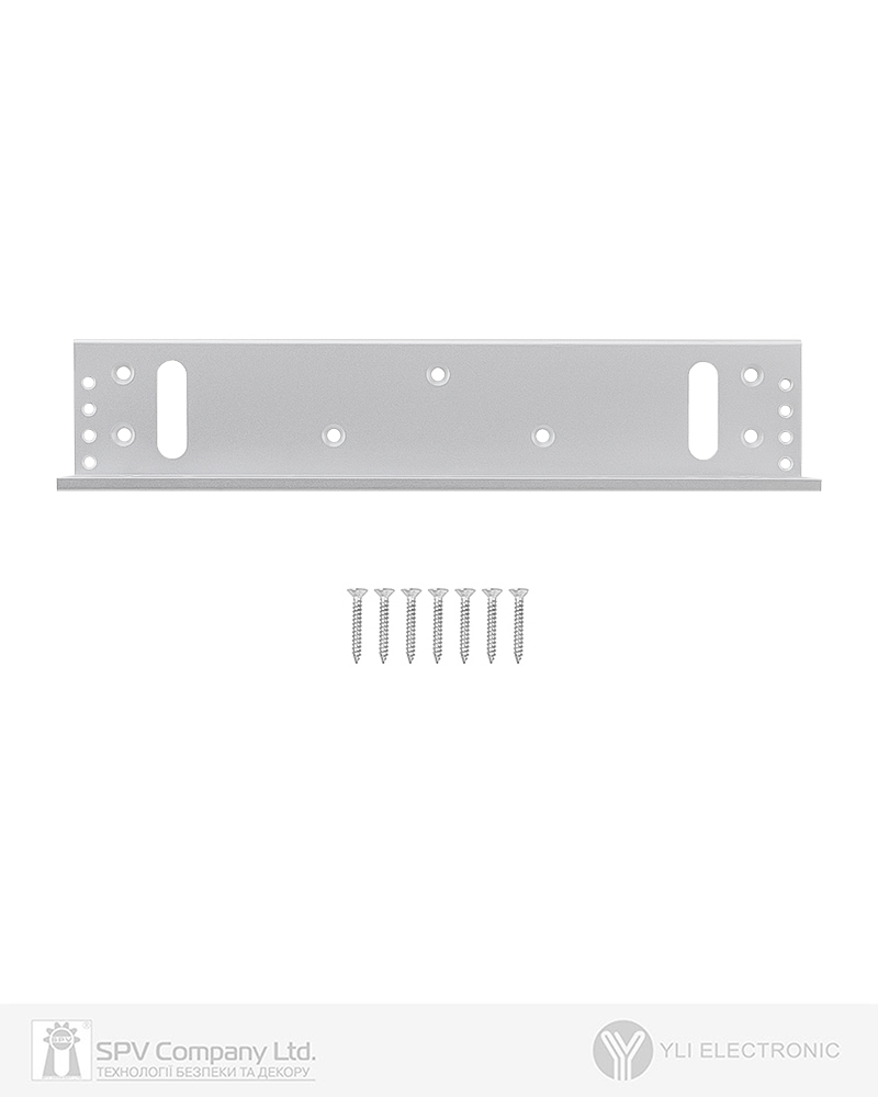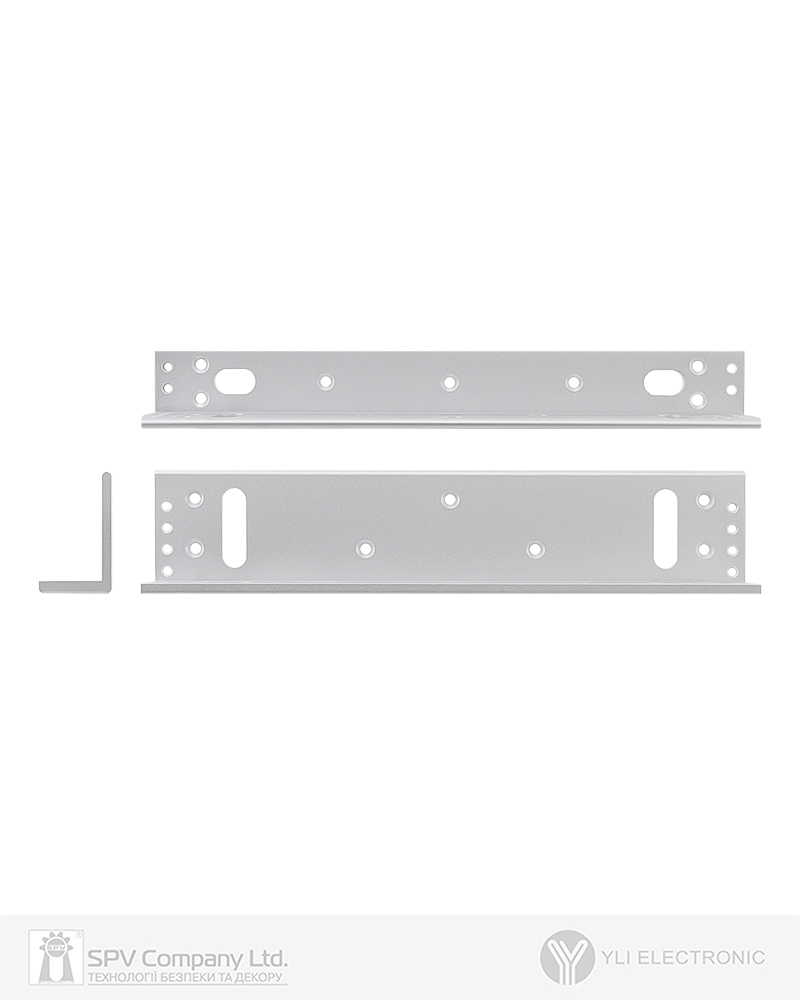 L-образний кронштейн для встановлення електромагнітного замка YLI YM-350N на двері з вузькою рамою, коли верхня частина коробки не має горизонтальної основи для монтажу замка.