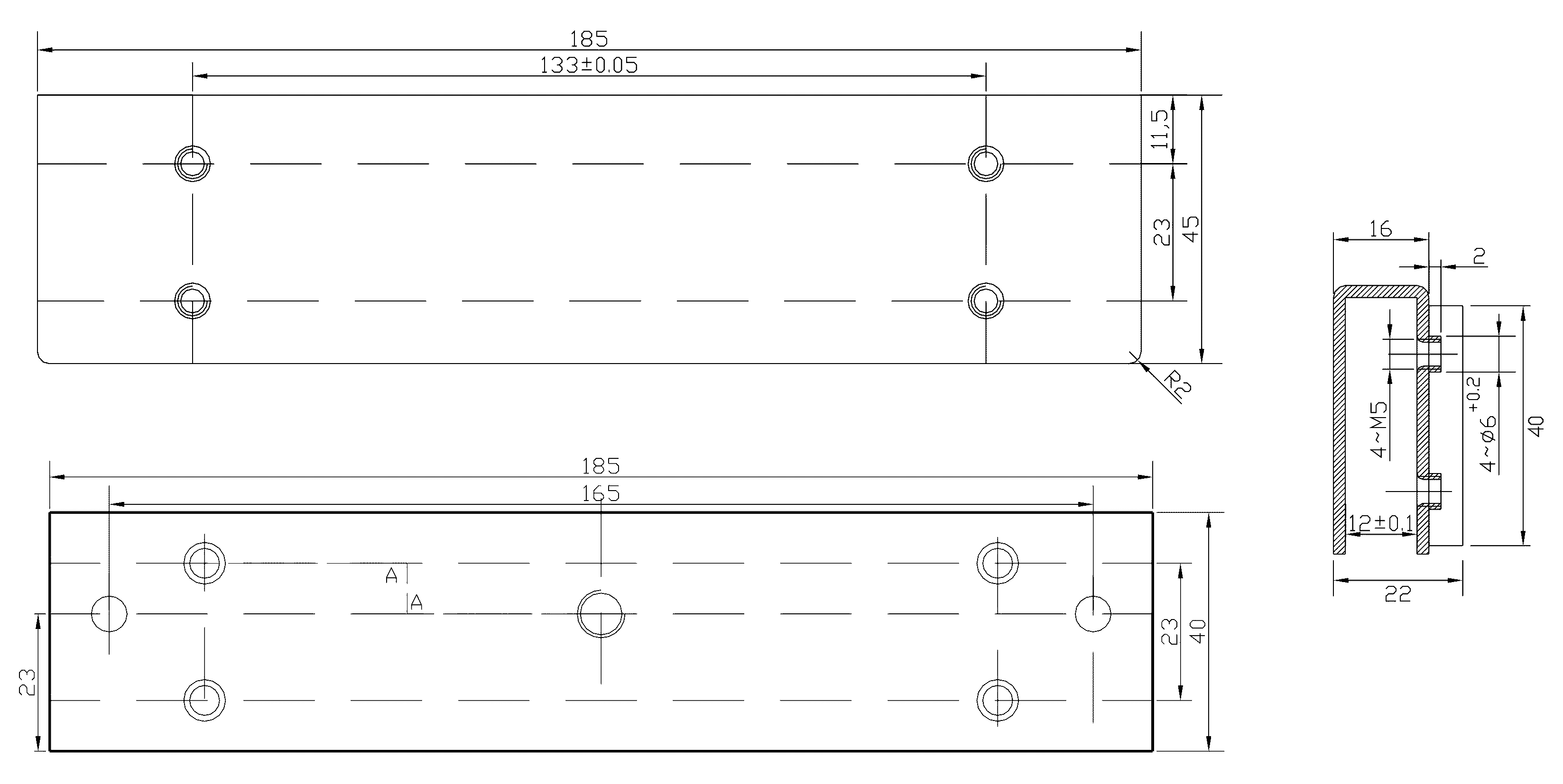 - Розміри (Ш х В х Г), мм: 185 x 45 x 22.5