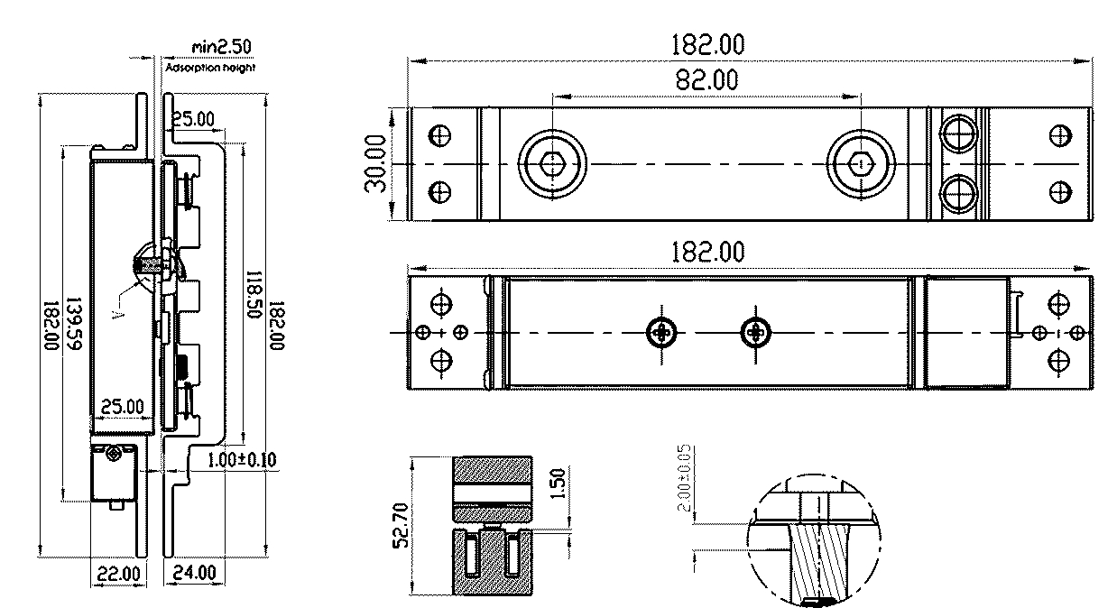 - Розміри: замок: 182х30х25мм; зворотна частина: 182х30х23,6мм