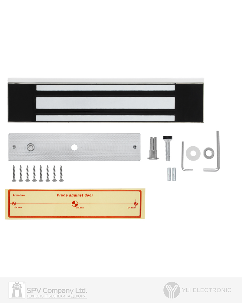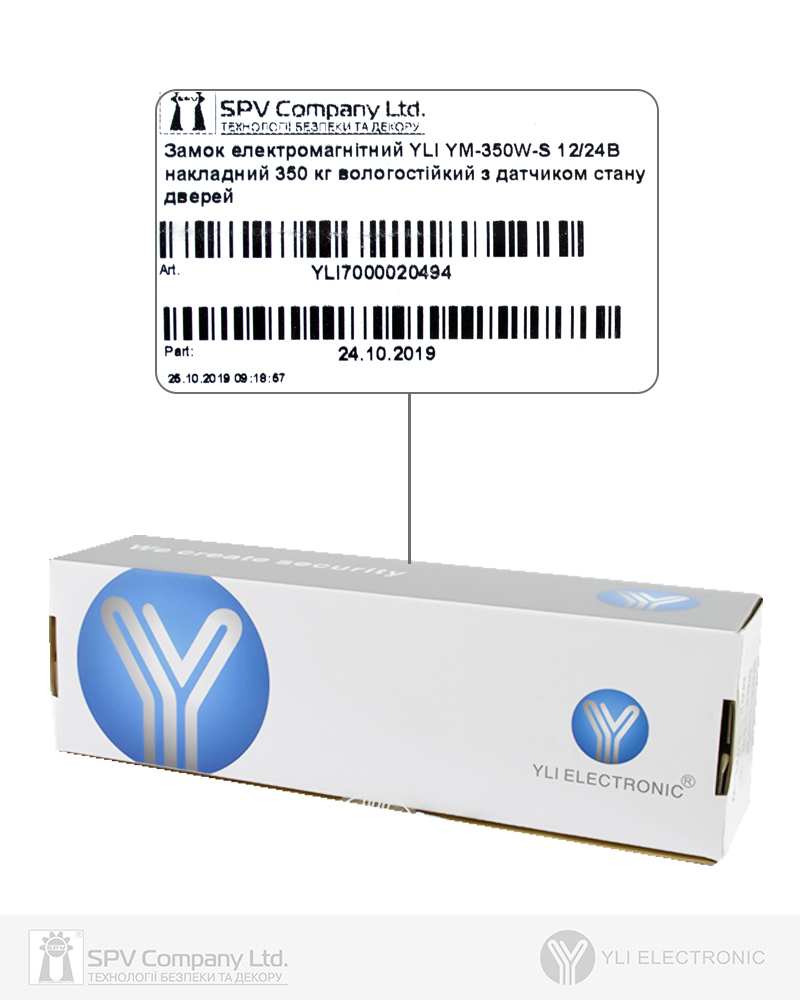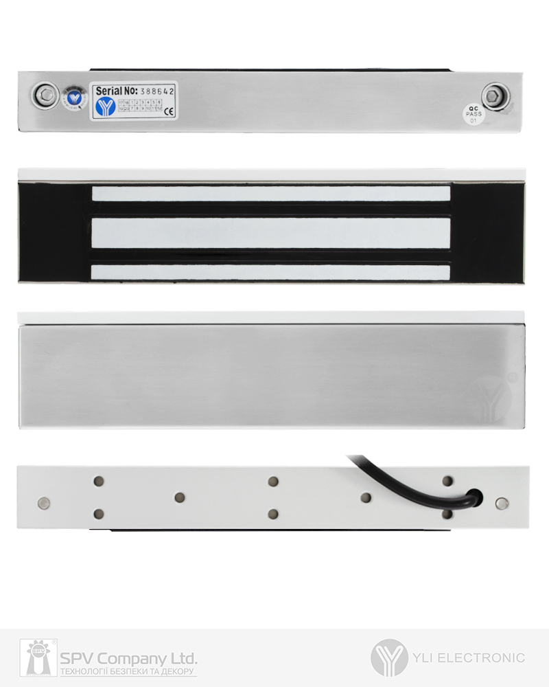 Електромагнітний замок накладного монтажу з силою утримання 350 кг з датчиком стану дверей. Повністю захищений від потрапляння вологи всередину. Призначений для встановлення на металеві, скляні, профільні та дерев’яні двері в якості виконавчого елементу системи контролю доступу.