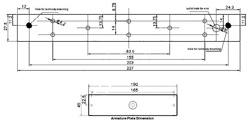 - Розміри: замок: 228х53х29мм; зворотна частина: 190х45х11мм