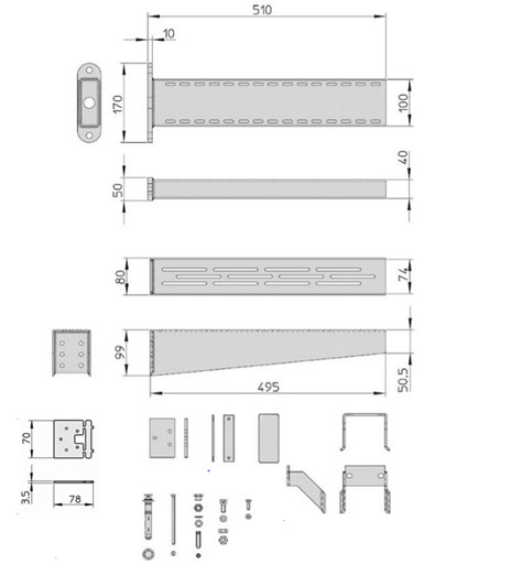- Монтажна полка добірного кронштейну кріплення Т-форми (Довжина х Ширина), мм: 495х74;