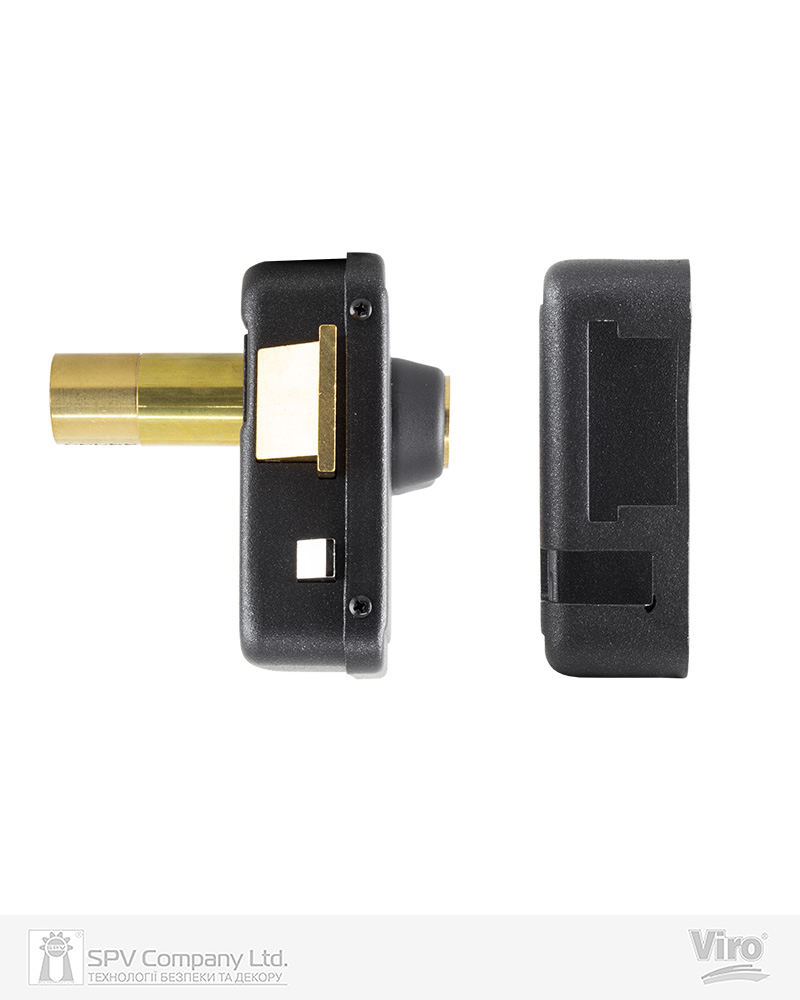 - замок взаємозамінний за BackSet та отворами кріплення із більшістю накладних замків VIRO: при монтажі можна використовувати з раніше встановленою запірною планкою іншого замка.