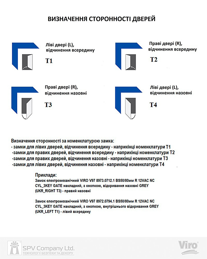 Електромеханічний накладний замок VIRO V97 моделі 8972.0794.1 керується електричним імпульсом змінного струму, з внутрішньою кнопкою виходу призначений для внутрішніх та зовнішніх дверей, вуличних брам, хвірток, захисних розпашних решіток, відкривання яких здійснюється до середини приміщення чи на сторону внутрішньої території об’єкту, як основний замок для розмежування контролю доступу.