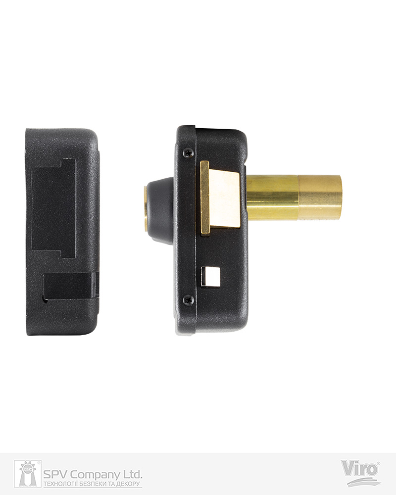 - замок взаємозамінний за BackSet та отворами кріплення із більшістю накладних замків VIRO: при монтажі можна використовувати з раніше встановленою запірною планкою іншого замка.