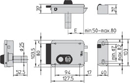 - електромеханічна функція: замок нормально замкнений, перехід в відімкнений стан замка керується електричним імпульсом, ззовні відмикається ключем, з внутрішньої сторони кнопкою виходу;