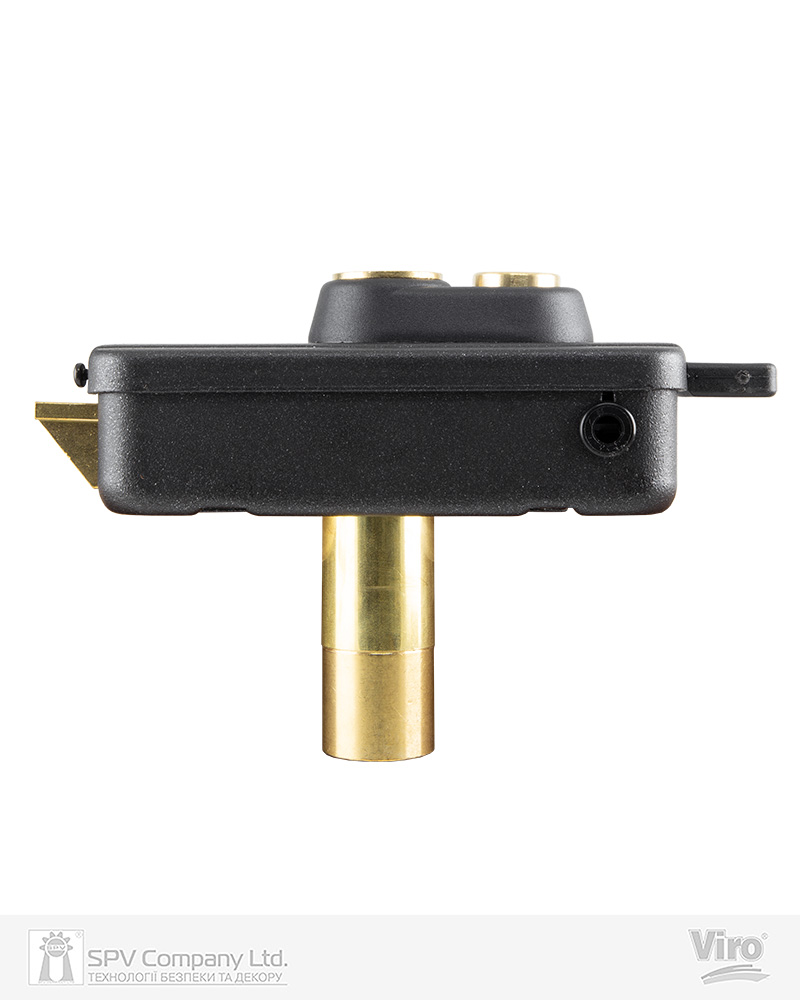 - комплект пари циліндрів VIRO 791/794: круглі, п’ятипінові, з твердої латуні; внутрішній VIRO 791 зафіксований до корпусу замка, не регулюється; зовнішній VIRO 794 на товщину дверей до 53мм, кріпиться стяжними болтами з середини корпусу замка, опційно – комплект подовження V798.0600 для циліндра VIRO 794 на товщину дверей 50-83 мм; клас захисту Standard Security – плуги і піни латунні, захист від свердління - піни грибовидної форми; маса комплекту 0,24кг; ключі універсального спецпрофілю VIRO UN;