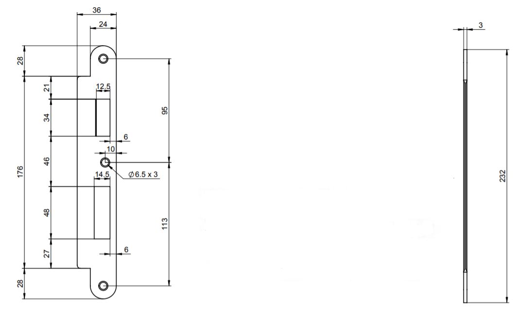 - призначення: зворотна запірна планка монтується у раму або на одвірок дверей з робочою шириною поверхні для монтажу від 36 мм при вертикальному встановленні замка у дверному полотні;