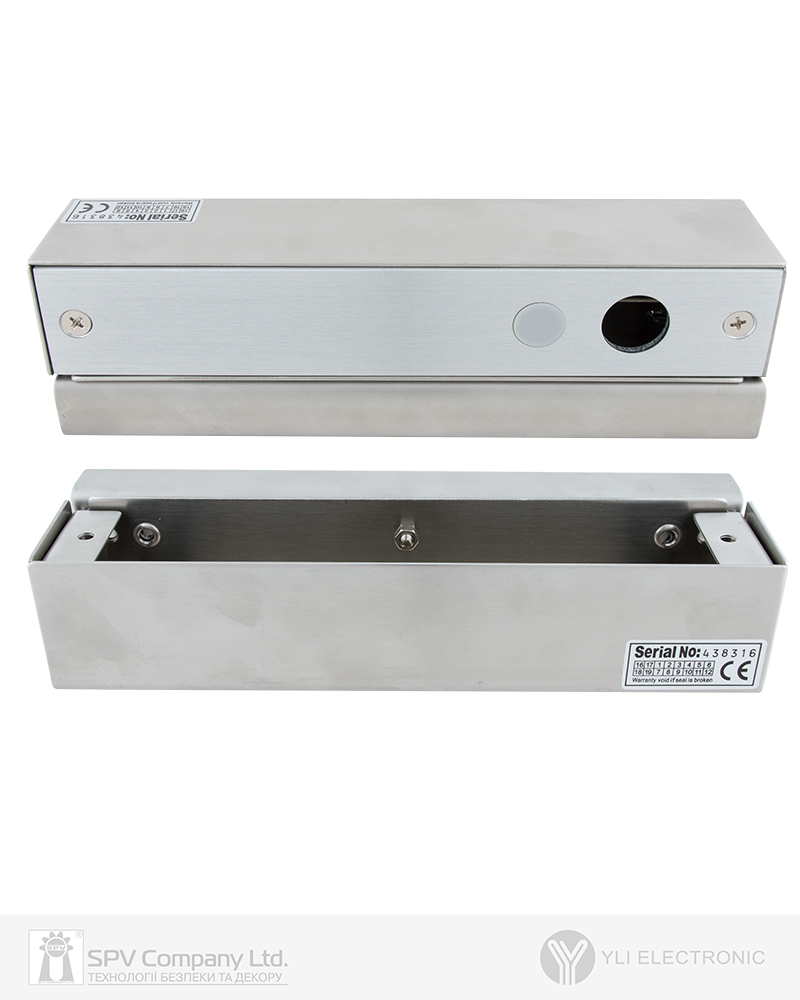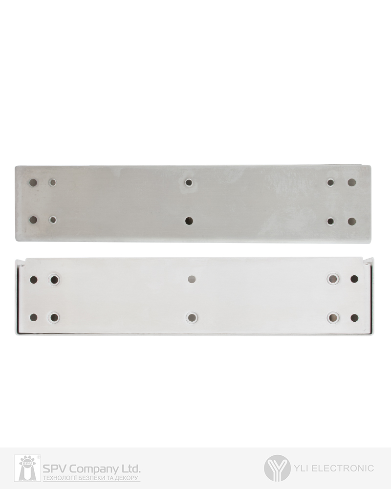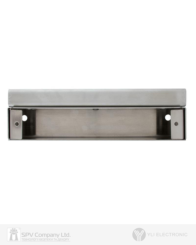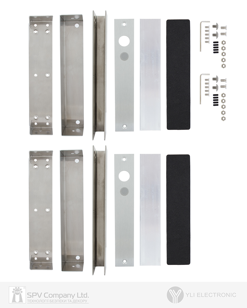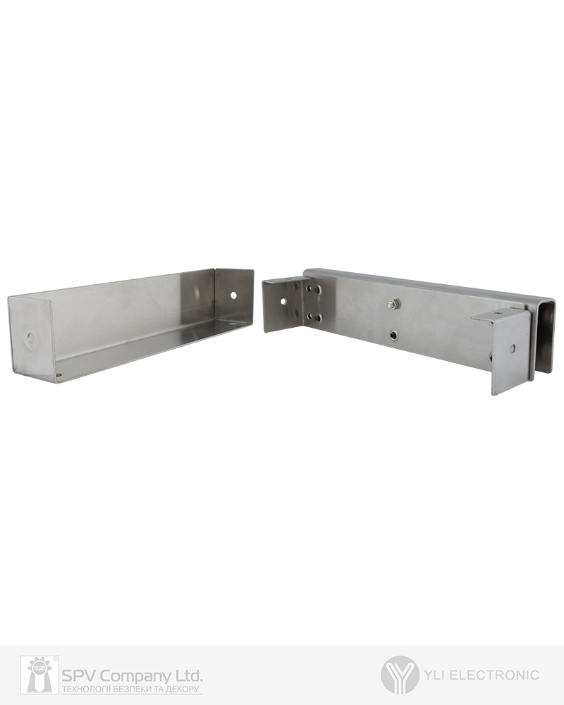 Спеціальний кронштейн встановлення електроригелю YLI YB-100+ та зворотної планки на суцільноскляні двері без рами, які мають суцільноскляне оточення.