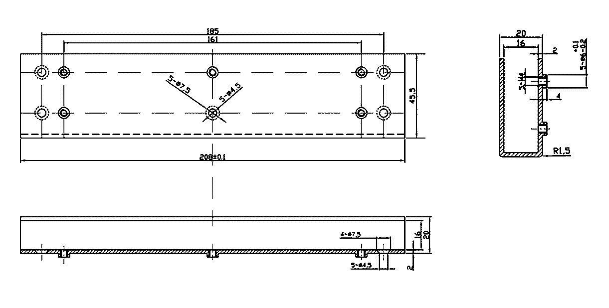 Кронштейн для зворотної планки (довжина х ширина х висота), мм: 208 x 45,5 x 57