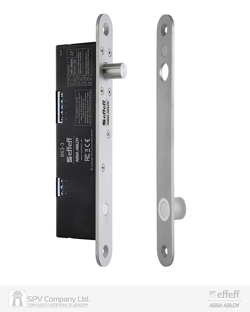 Надійний та високобезпечний, спеціальної компактної конструкції DIN стандарту, універсальний однонаправлений соленоїдний електроригельний замок EFF EFF 843-3-------Q41 з датчиками положення блокуючого ригеля та дверей, призначений для врізного монтажу для сучасних зовнішніх та внутрішніх розпашних дверей з різноманітних профілів, металевих та дерев’яних дверей, а також, сумісно з додатковими аксесуарами та спеціальними монтажними кронштейнами, для відкритого накладного монтажу як розпашних, так і маятникового типу суцільноскляних дверних конструкцій, як оптимальний додатковий замок підвищеної надійності з високою стійкістю (до 1000 кг) проти зламу, що здатен до експлуатації як в комерційній сфері застосування на об’єктах корпоративного значення, так і в приватній сфері застосування у громадських будівлях, як приклад: відділення банків, технічні приміщення IT-компаній, виробничо-технічні та науково-дослідні лабораторії, майстерні з надання найрізноманітніших послуг, виставкові зали музеїв, службово-технічні приміщення та спецприміщення гідроелектростанцій, електропідстанцій, заводів, фабрик, елеваторів, радіо та телекомпаній, дипломатичних установ, дитячо-виховних, навчальних та розважальних закладів, кінотеатрів та продюсерських мюзик центрів, лікарень, в котеджних та вхідних дверях у житлових будинках і котеджах, в житлово-побутових блоках.