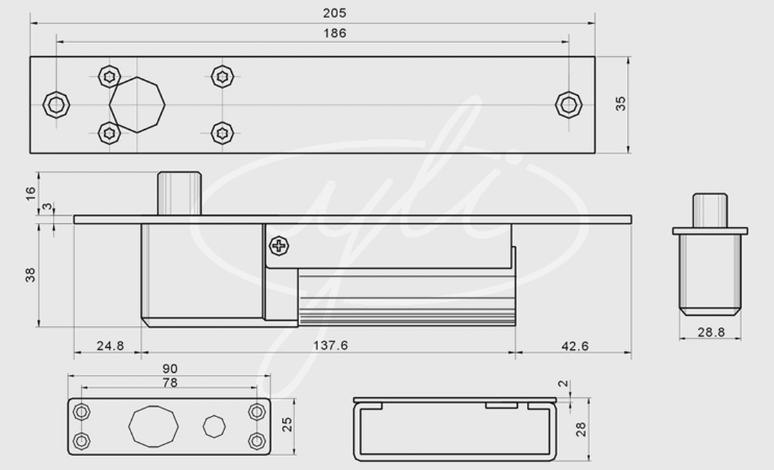 Замок електроригельний врізного монтажу. Призначений для надійного електромеханічного замикання дерев’яних, металевих та профільних дверей в складі СКД. Із застосуванням монтажної пластини встановлюється також на суцільноскляні двері.