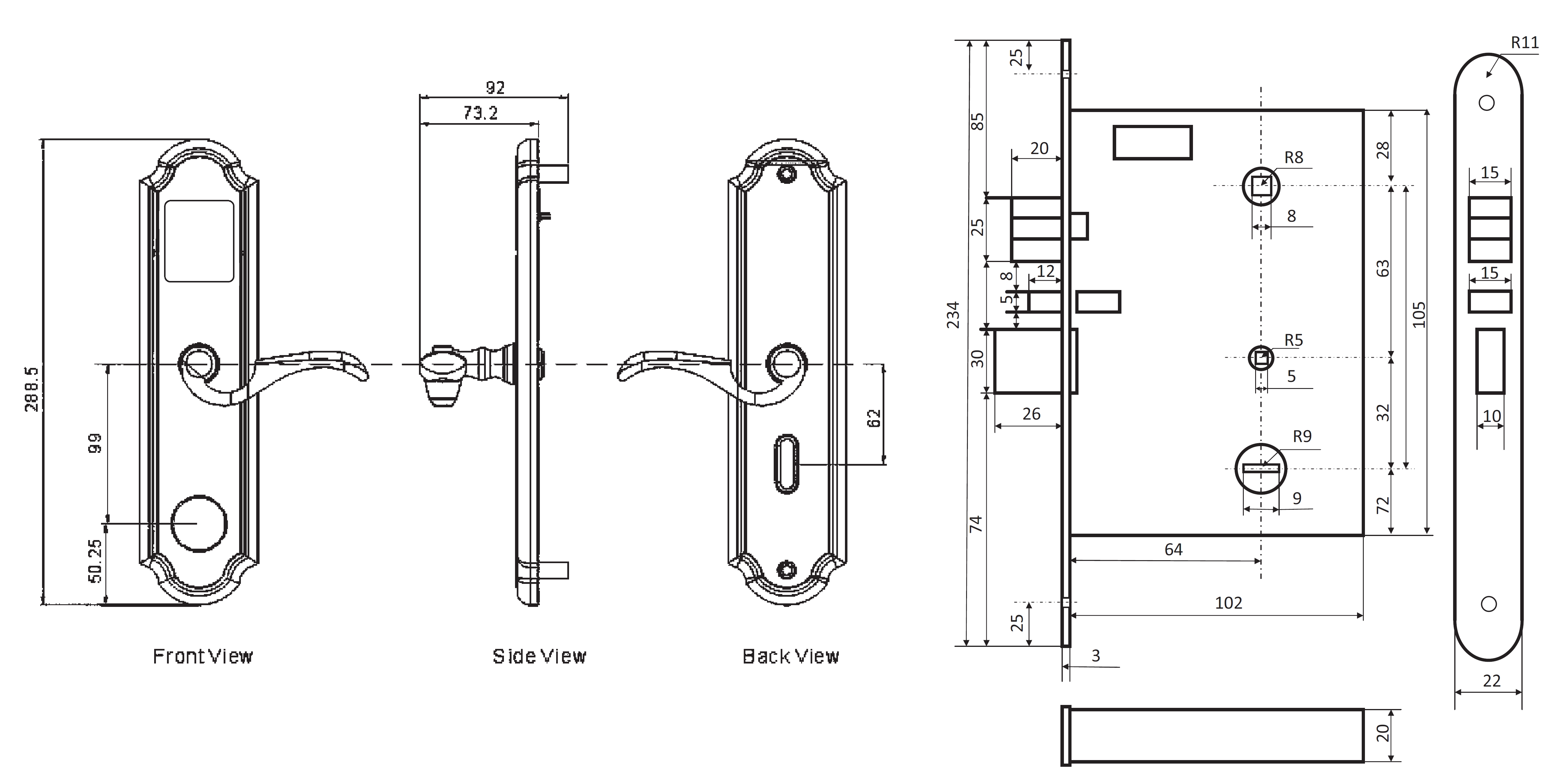 - Функція приватності («Не турбувати») - коли гість у кімнаті, замок можна бути відімкнути лише Майстер-карткою та карткою екстреного відмикання – активується замкненням замка зсередини на ригель за допомогою тумблеру.